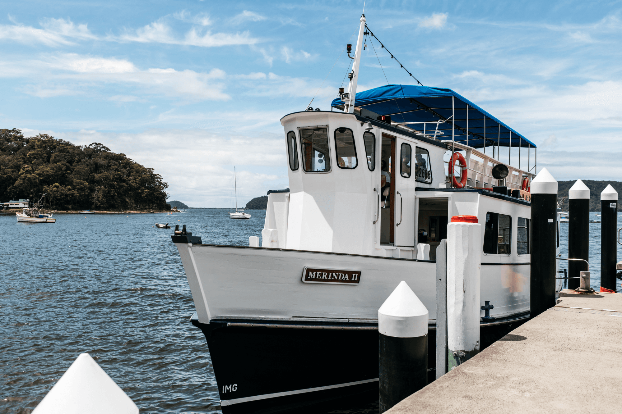 The ‘Merinda II’ is a fifty foot timber passenger ferry, built by Norman Wright + Sons in 1983. Boathouse Ferry Co. began operating the ferry in November